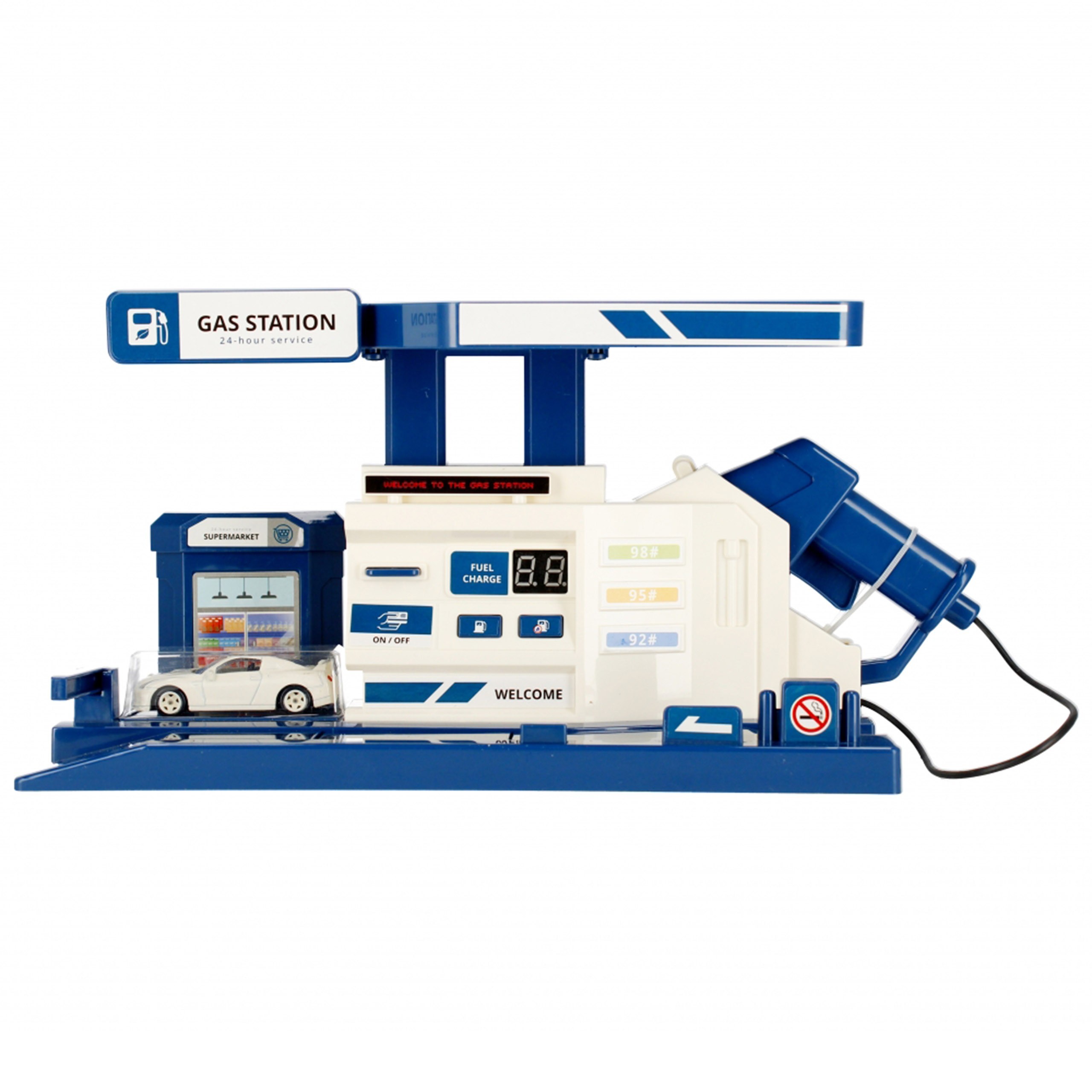 Zestaw zawiera stację benzynową z supermarketem, miejscami parkingowymi oraz samochodem, co czyni go kompletnym i atrakcyjnym dodatkiem do każdej kolekcji zabawek.