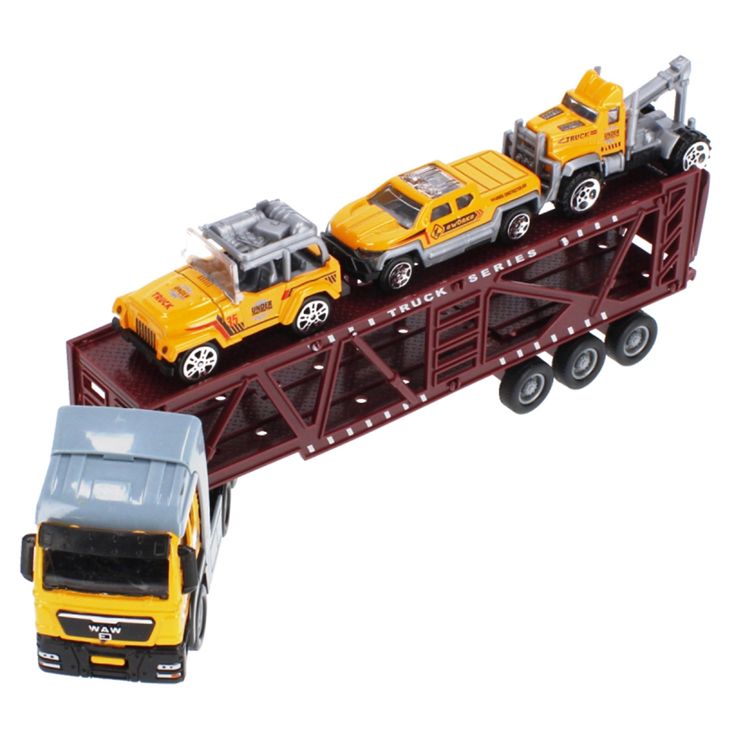 Zestaw zawiera ciężarówkę Kontener i trzy samochodziki, wykonane z plastiku oraz metalu, co gwarantuje trwałość i bezpieczeństwo.