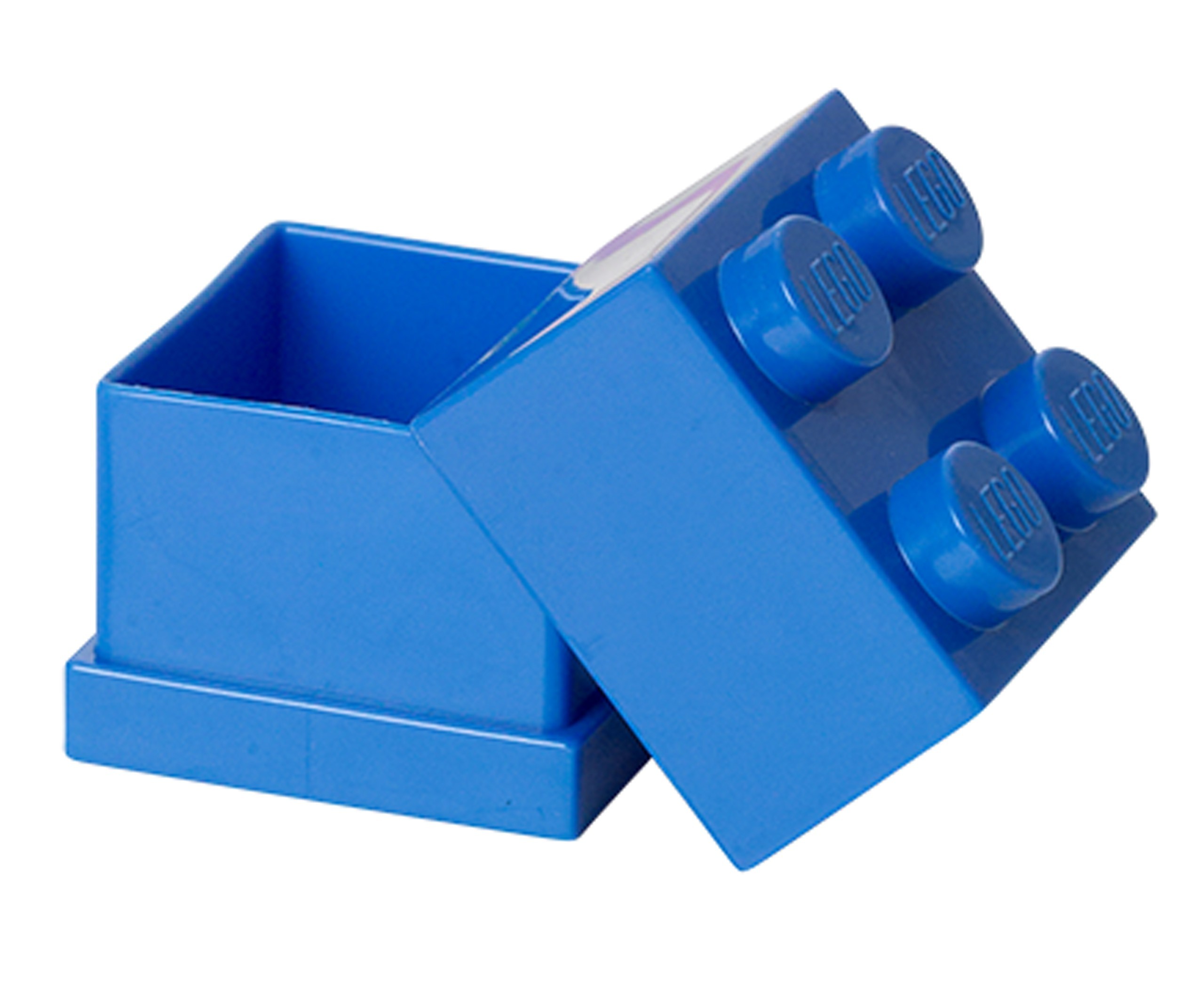 Niebieskie minipudełko o kształcie klocka LEGO.
