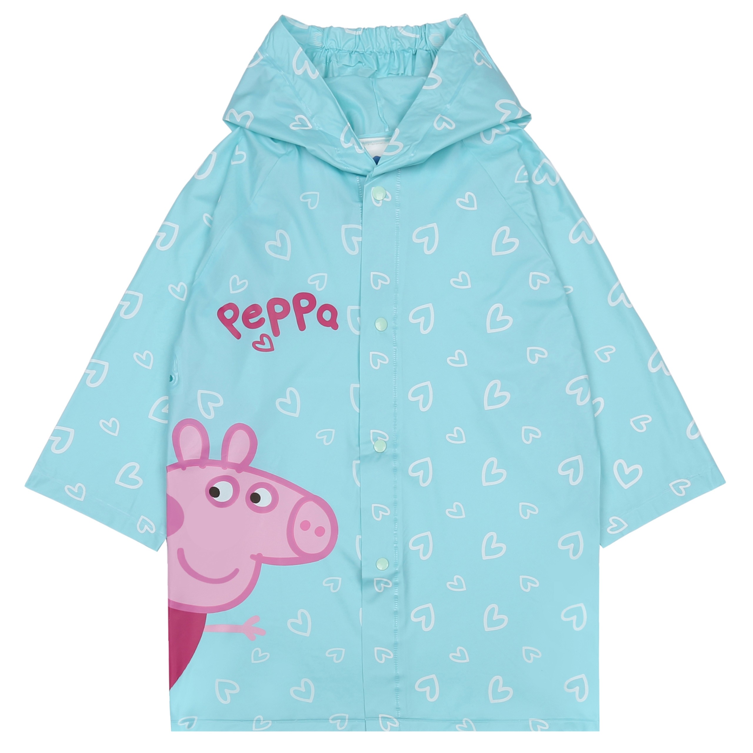 Uroczy płaszcz przeciwdeszczowy dla dzieci w kolorze turkusowym z motywem Świnki Peppy.