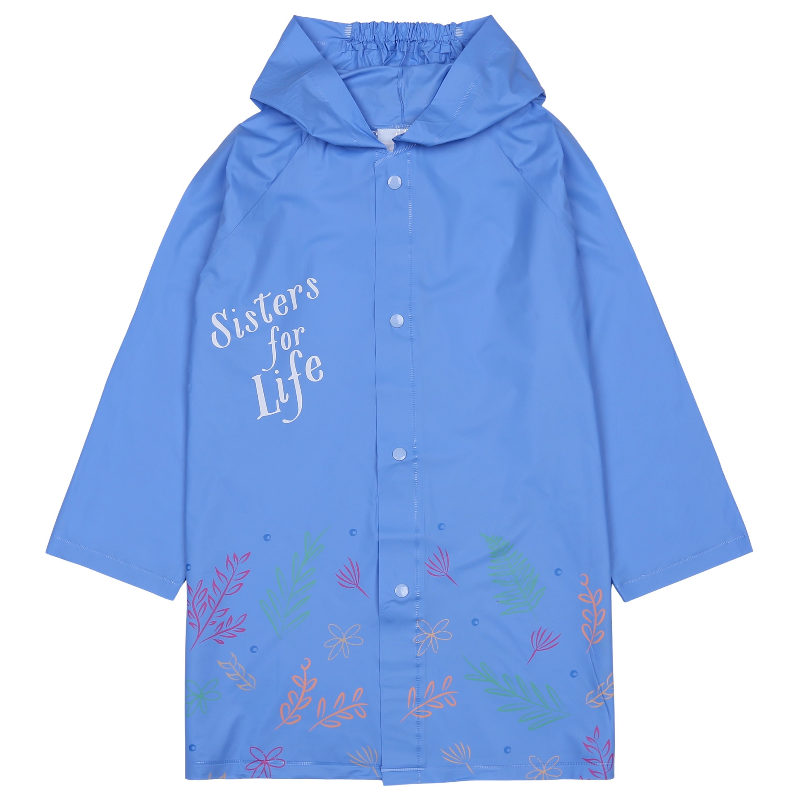 Przepiękny płaszcz przeciwdeszczowy w kolorze błękitnym z postaciami Anny i Elsy z uwielbianej bajki Kraina Lodu.