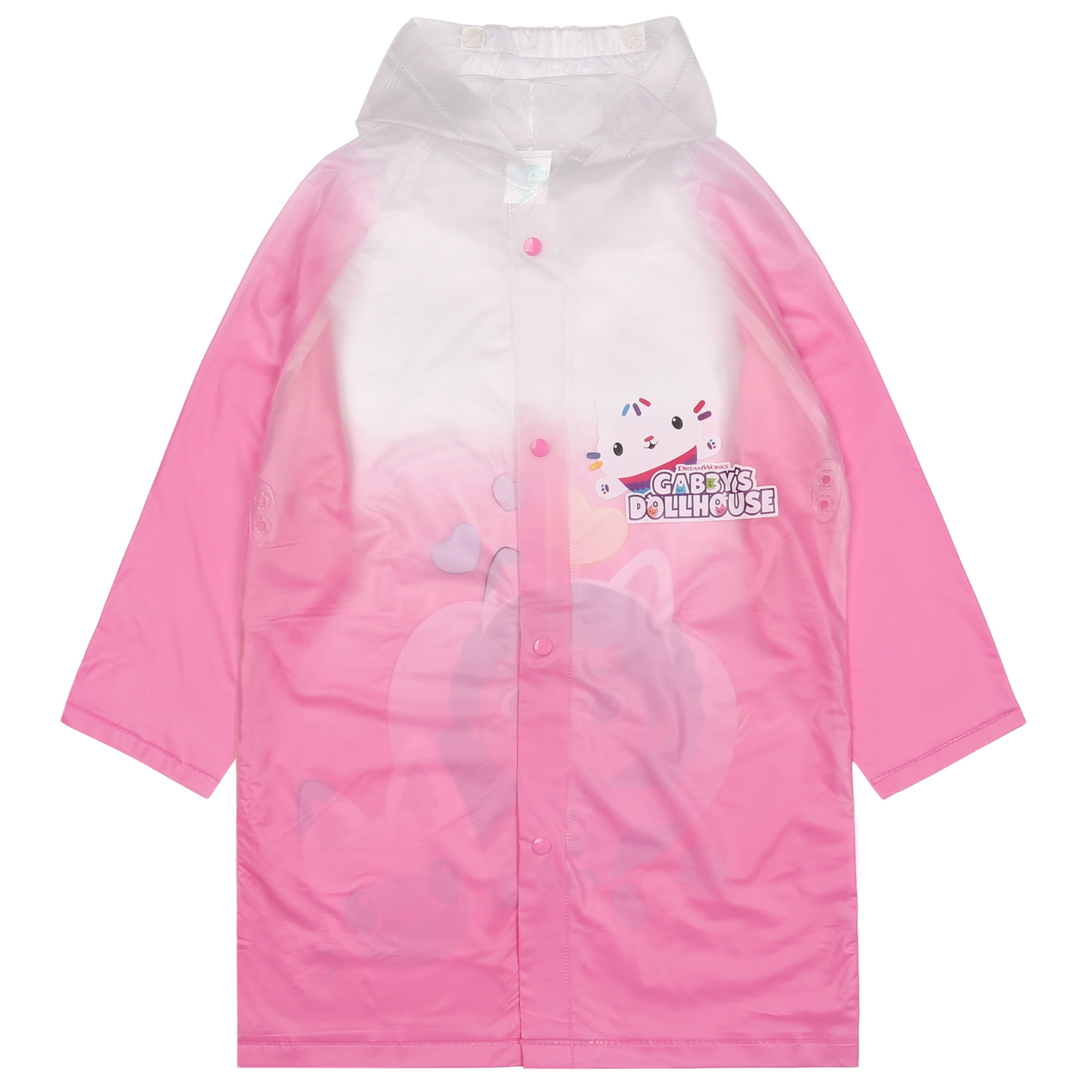 Uroczy różowo-biały płaszcz przeciwdeszczowy inspirowany bajką Gabby's Dollhouse, idealny dla małych fanek serialu.