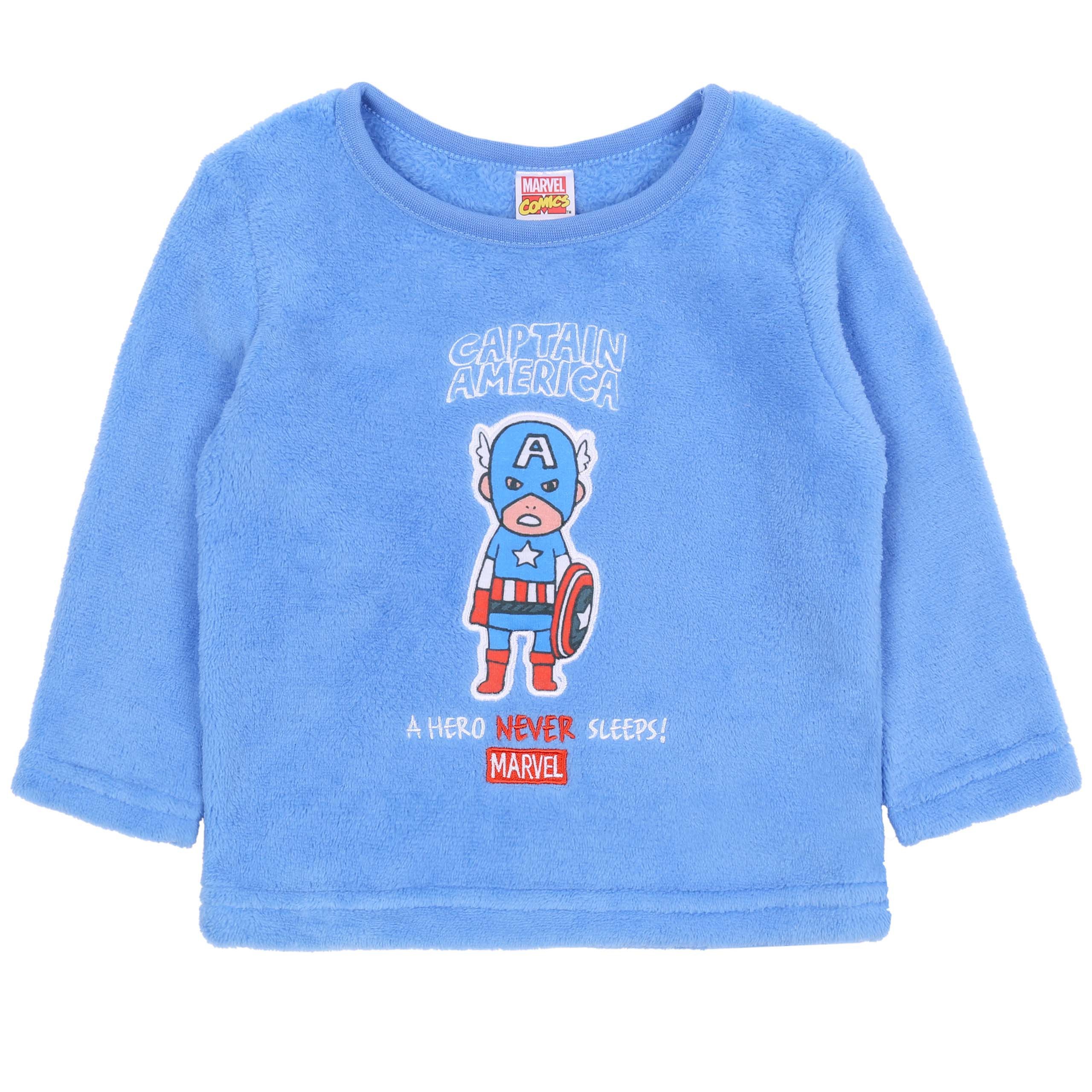 Niebieska piżama chłopięca w powtarzający się motyw jednego z bohaterów Avengers - Kapitan Ameryka.
