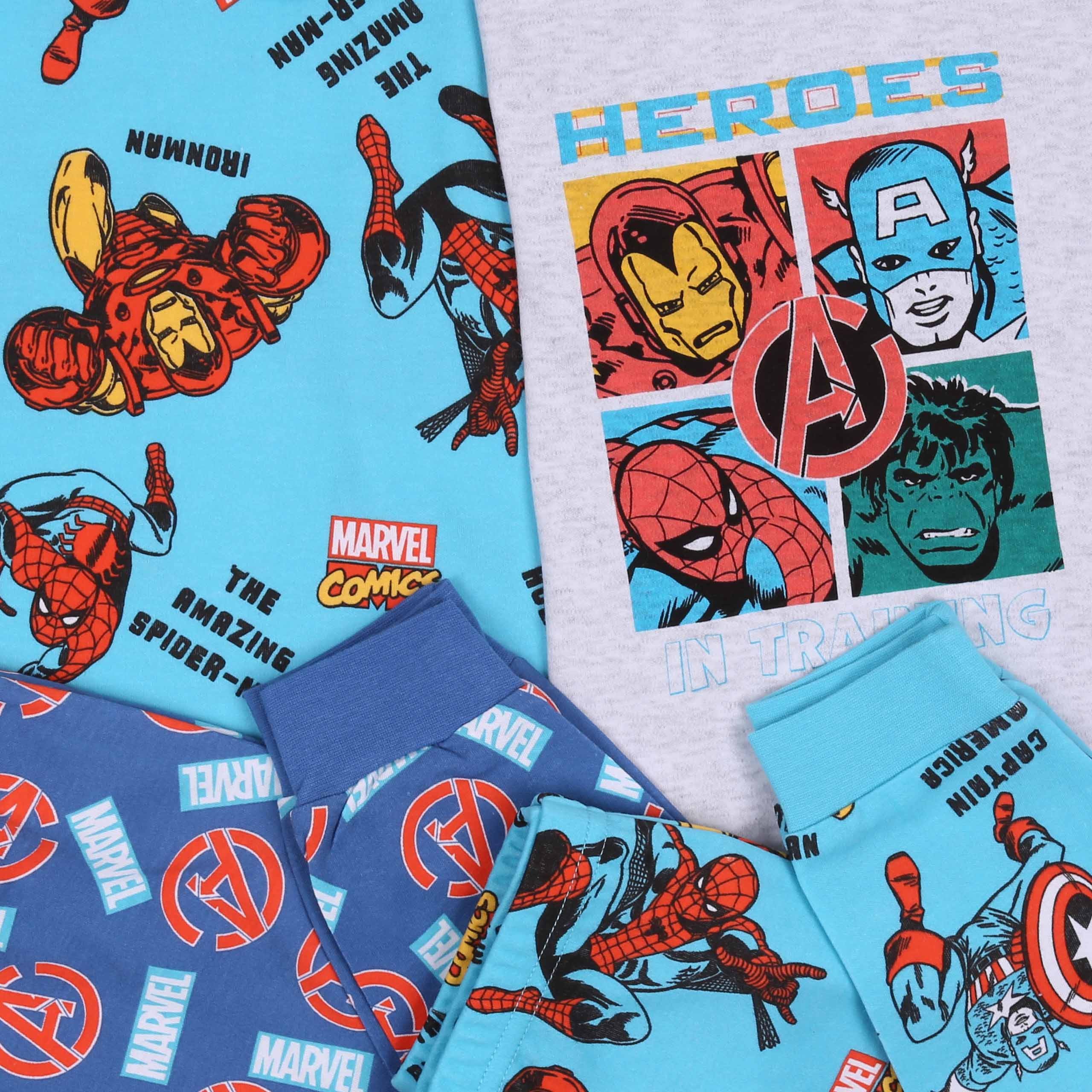 Komplet dwóch piżam chłopięcych w powtarzające się wizerunki superbohaterów filmu akcji "Avengers".