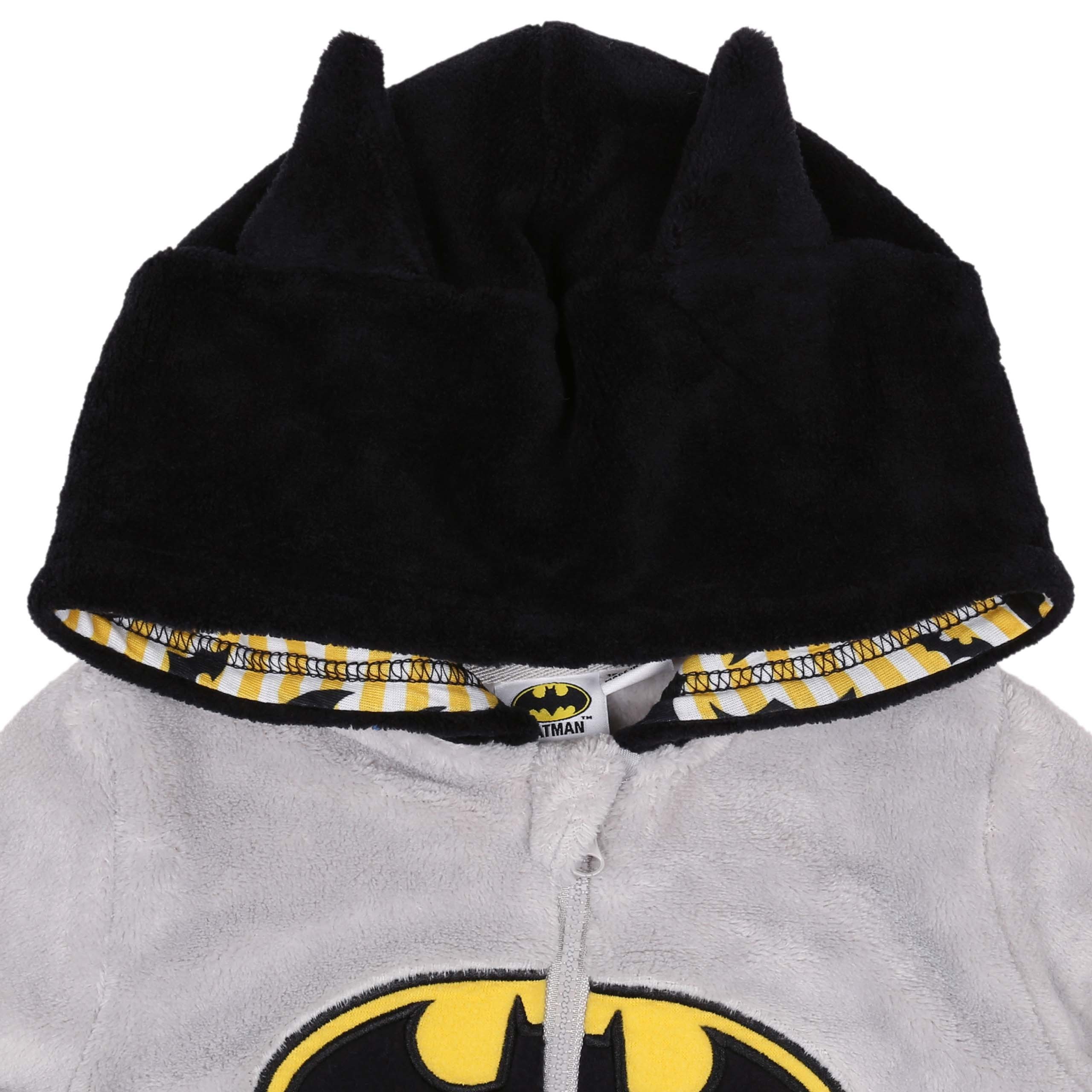 Szaro-czarna niemowlęca piżama jednoczęściowa z kapturem, z motywem superbohatera - Batmana.