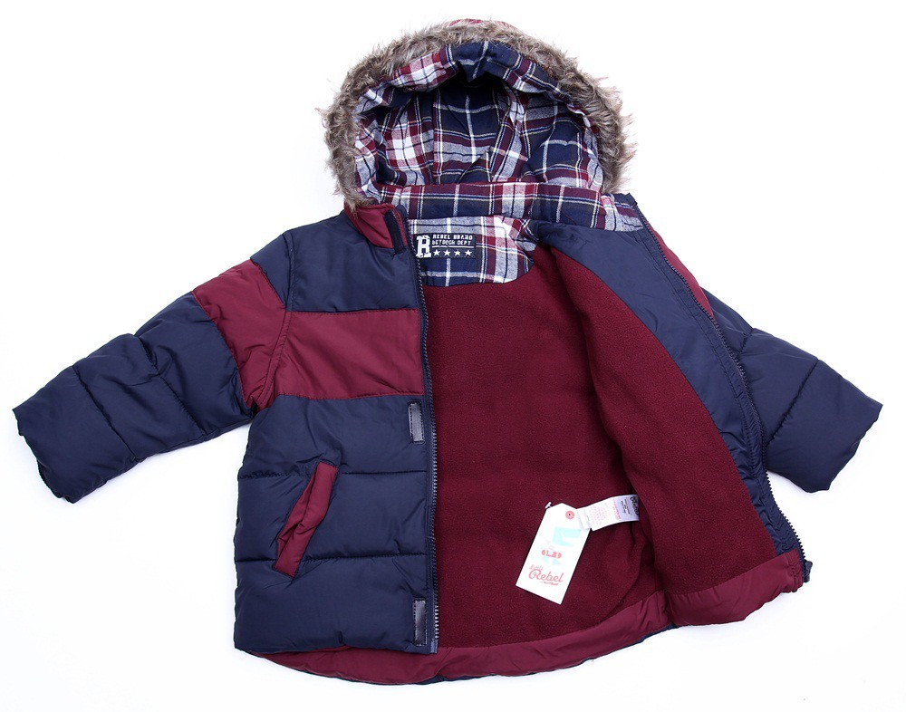 Kurtka jest wykonana z materiału odpornego na deszcz, po wewnętrznej stronie cieńszy polar.