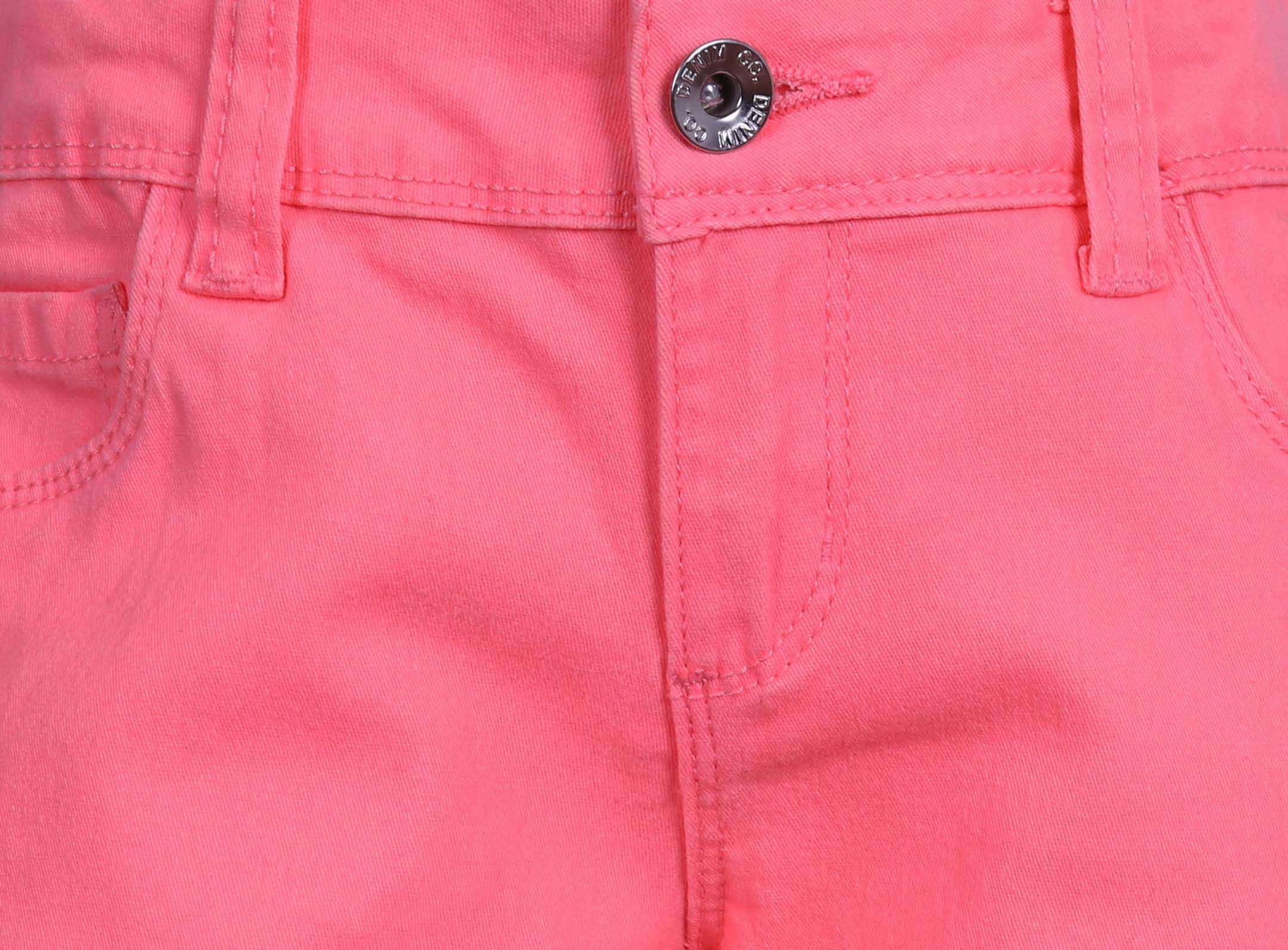 Różowo-neonowe, dopasowane spodnie, ze zwężaną nogawką.