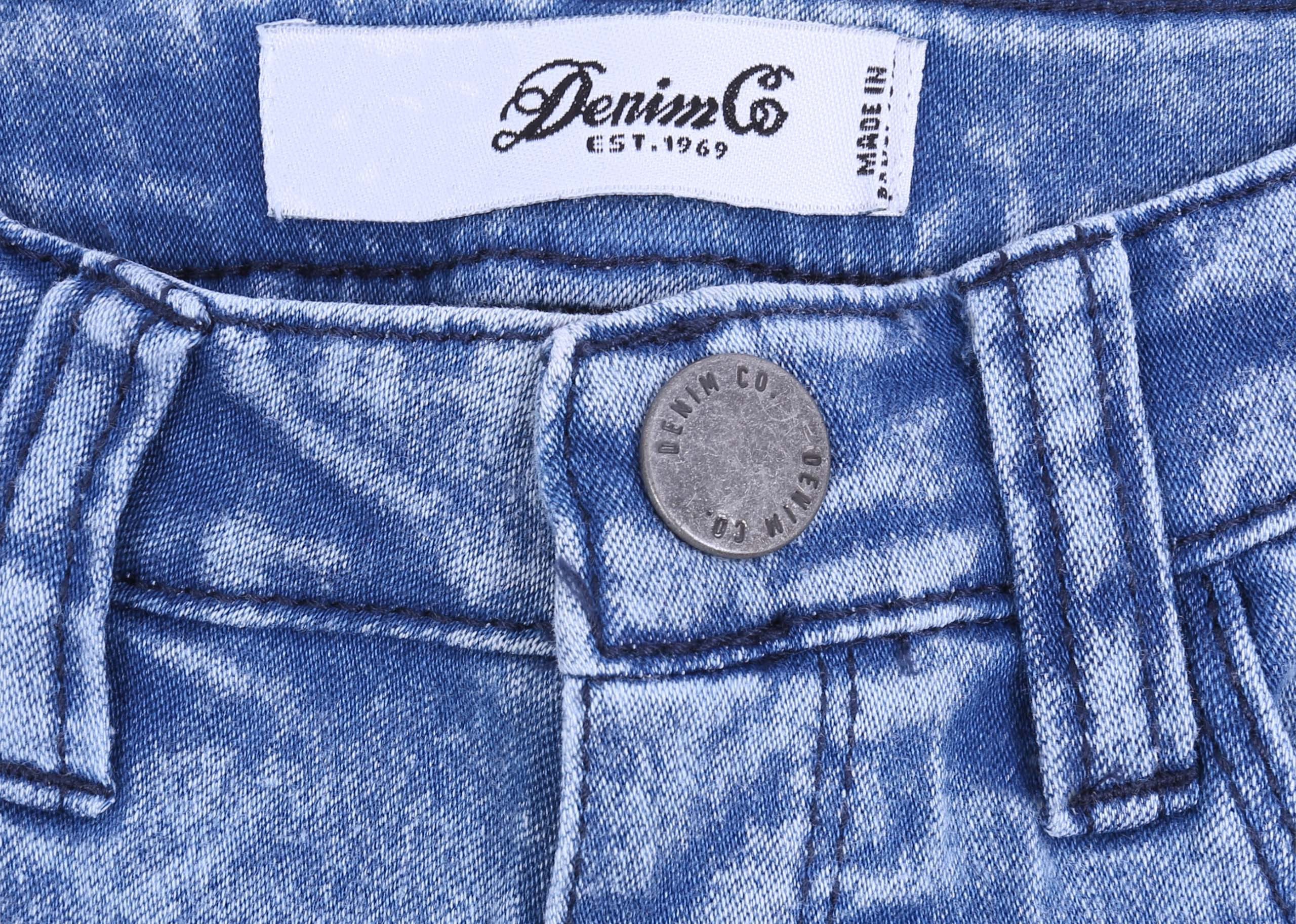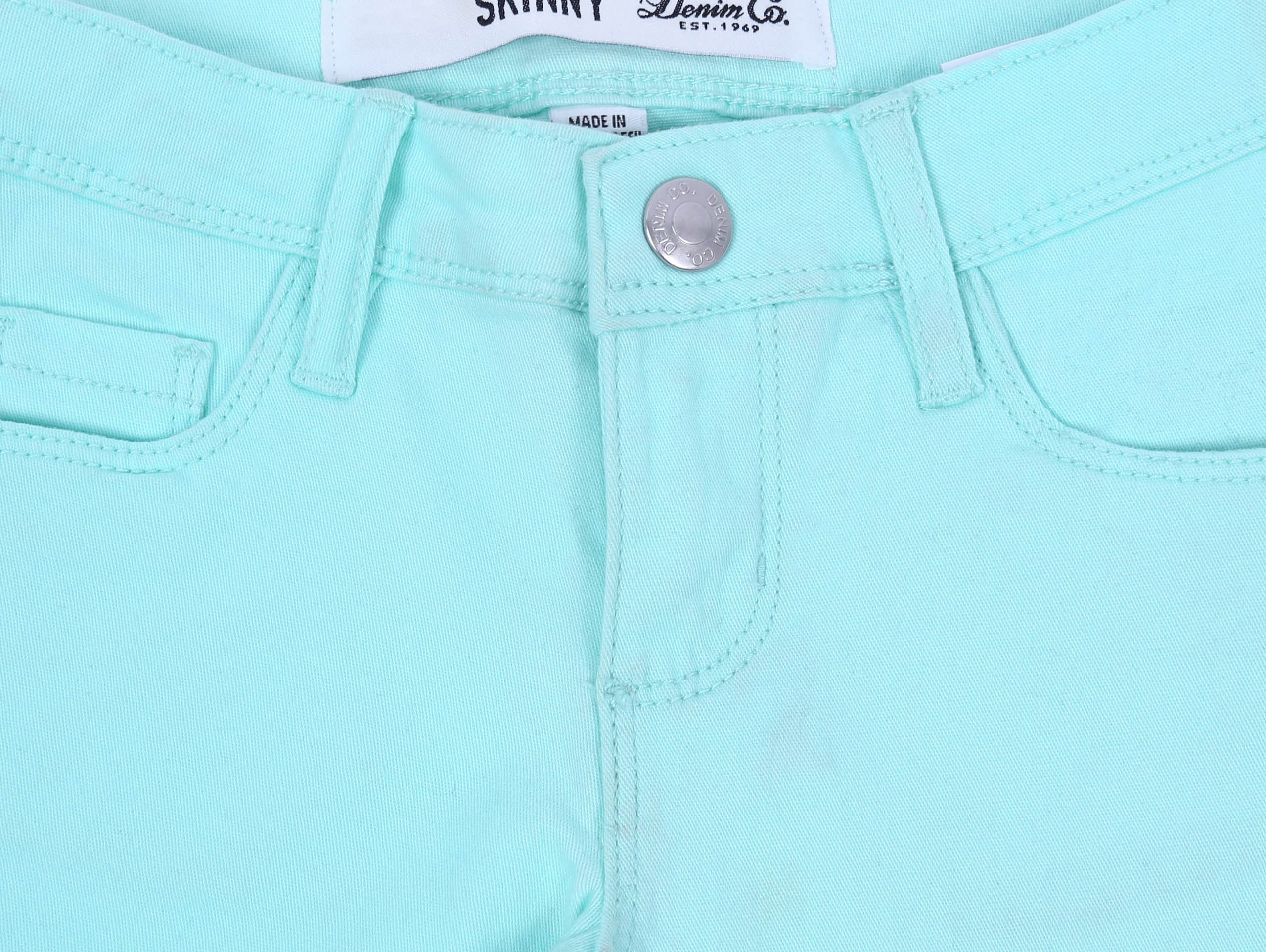 Niebieskie, jeansowe spodnie dziewczęce typu skinny.