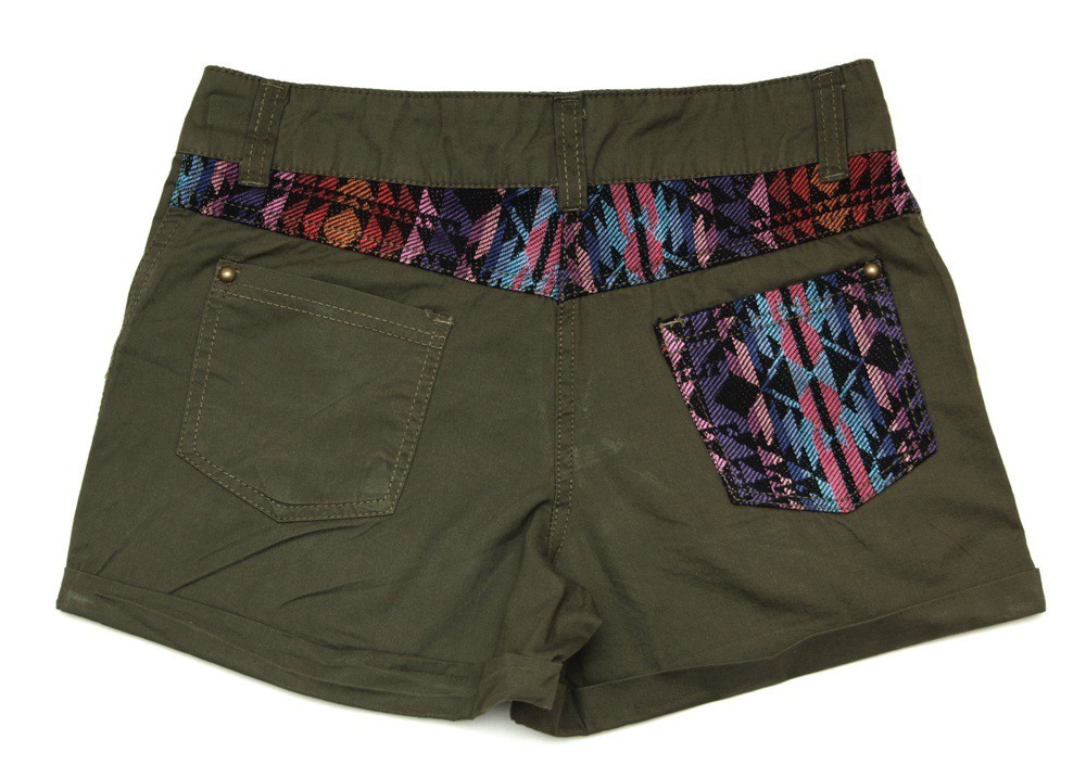 Spodenki z gumką w pasie oraz ozdobnym wiązaniem.