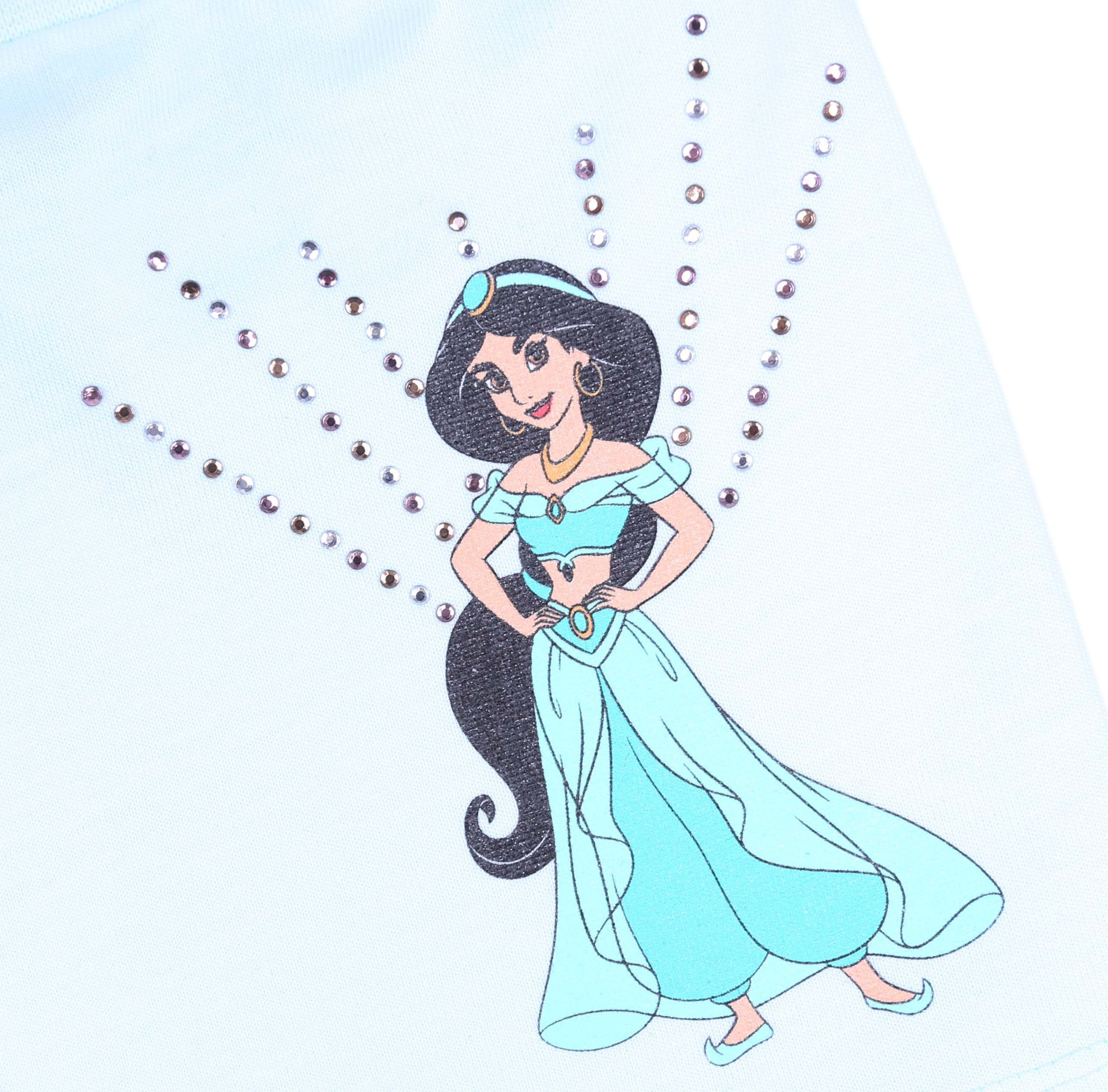 Jasnoniebieskie spodenki z wizerunkiem Księżniczki Dżasminy, postaci z filmu animowanego "Aladyn".