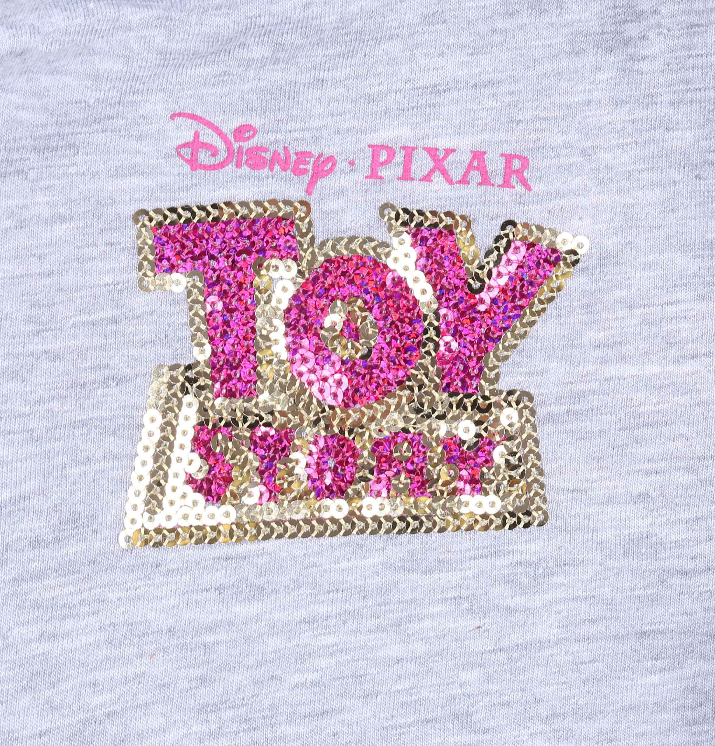 Szare, dziewczęce spodenki z cekinowym napisem "TOY STORY" z przodu.