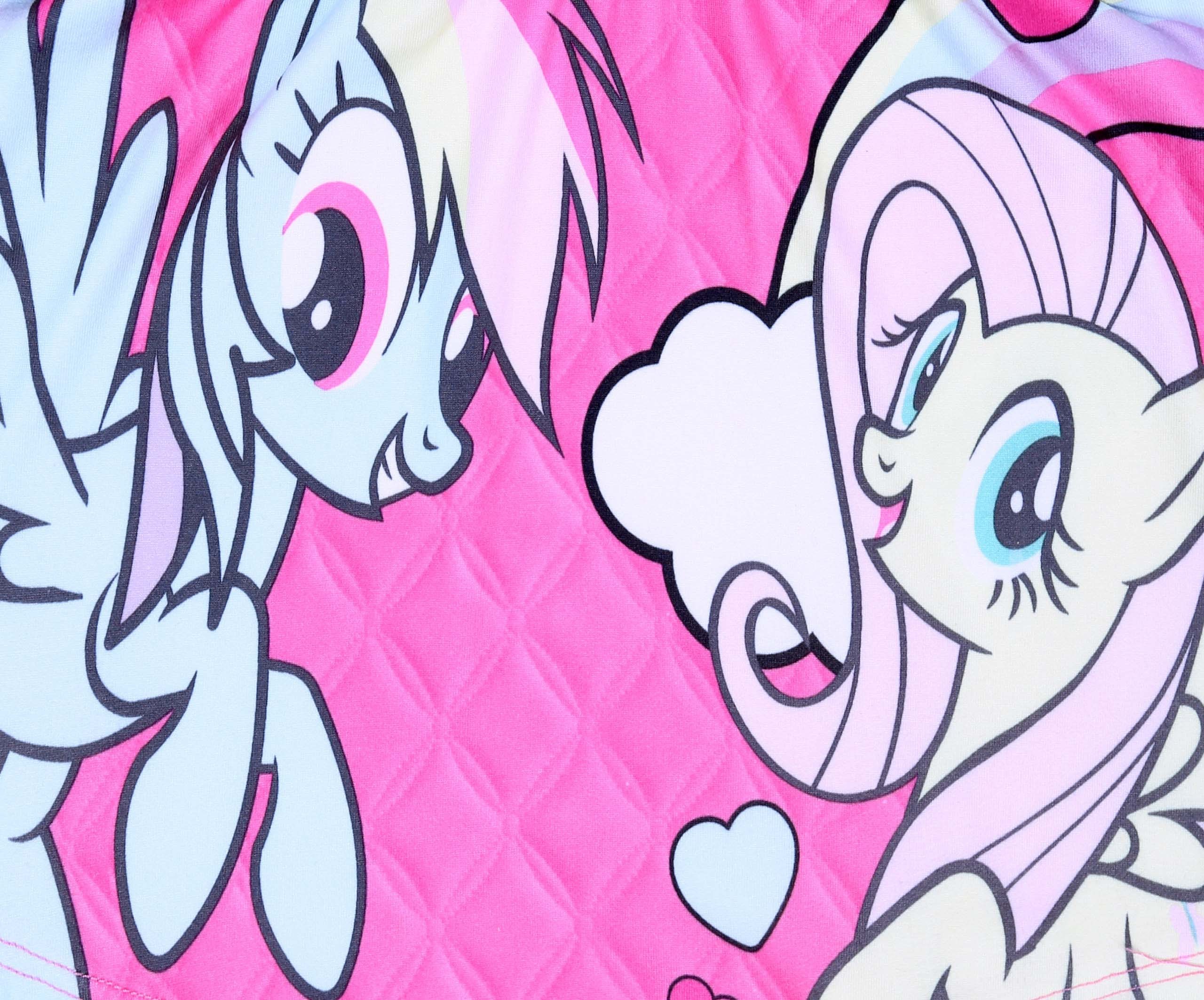 Różowa, rozkloszowana spódniczka dla dziewczynek z wizerunkami kucyków, z serialu animowanego "My little pony".