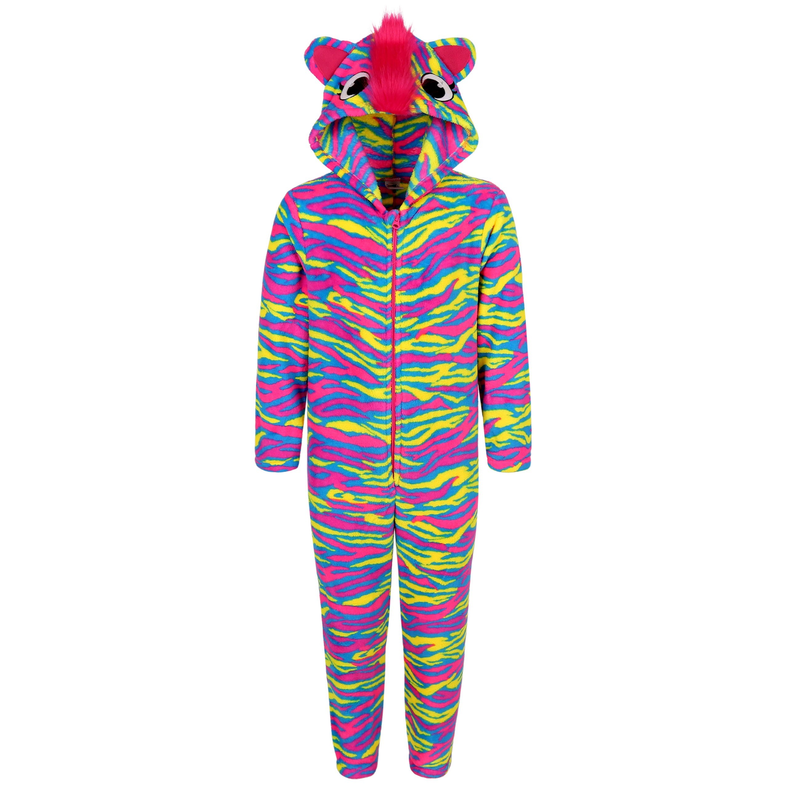 Polarowa piżama jednoczęściowa dziecięca z kolorowym motywem, z kapturem.